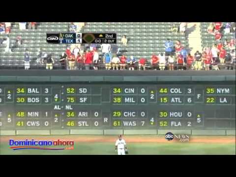 El accidente ocurrió en la segunda entrada luego de que Conor Jackson, de los Atléticos de Oakland, bateó de foul. La pelota rebotó hacia el jardín izquierdo y el jardinero de los Rangers, Josh Hamilton, recuperó la pelota y la lanzó a las gradas.